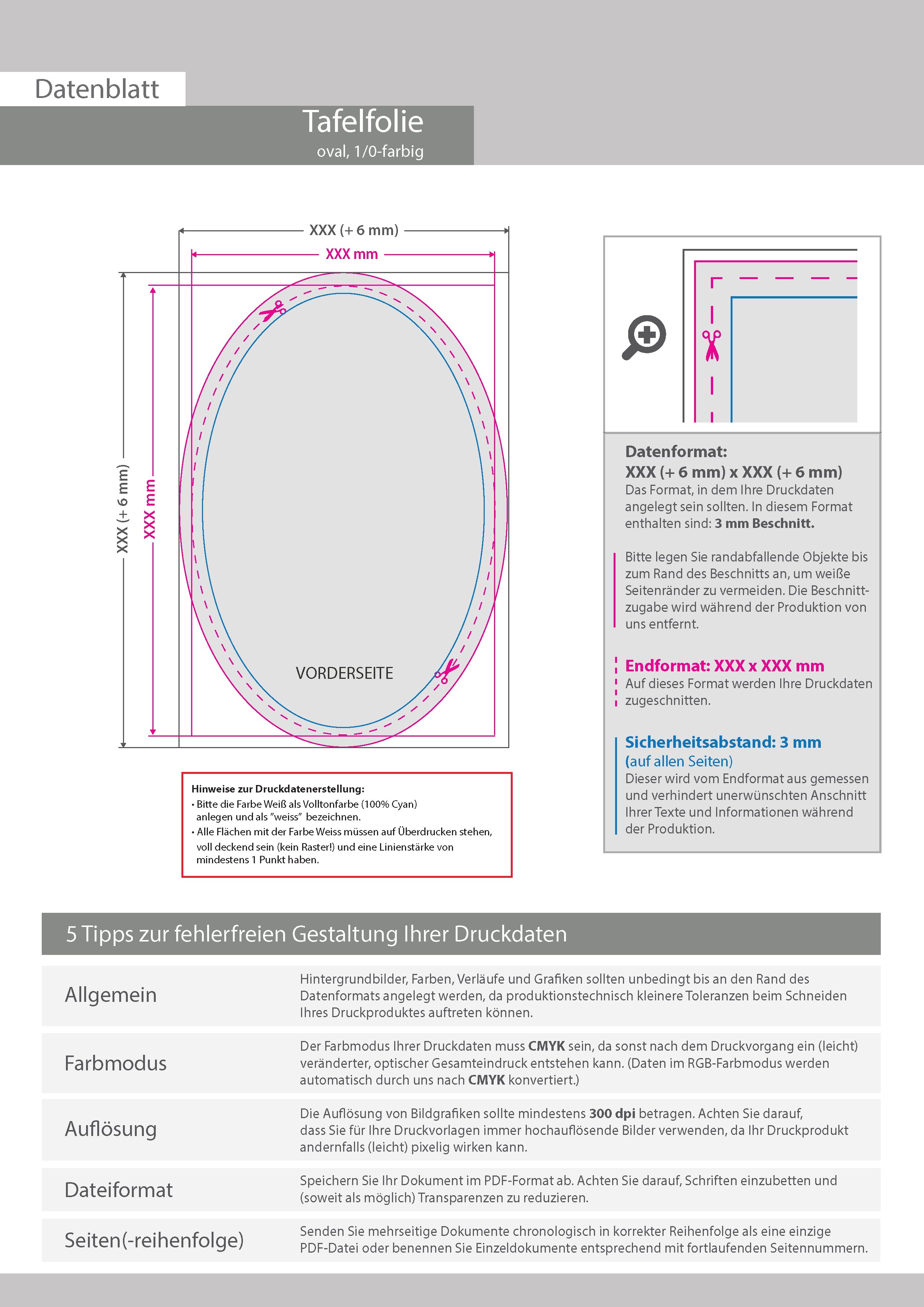 Hochwertige Tafelfolie mit Weißdruck oval (oval konturgeschnitten)