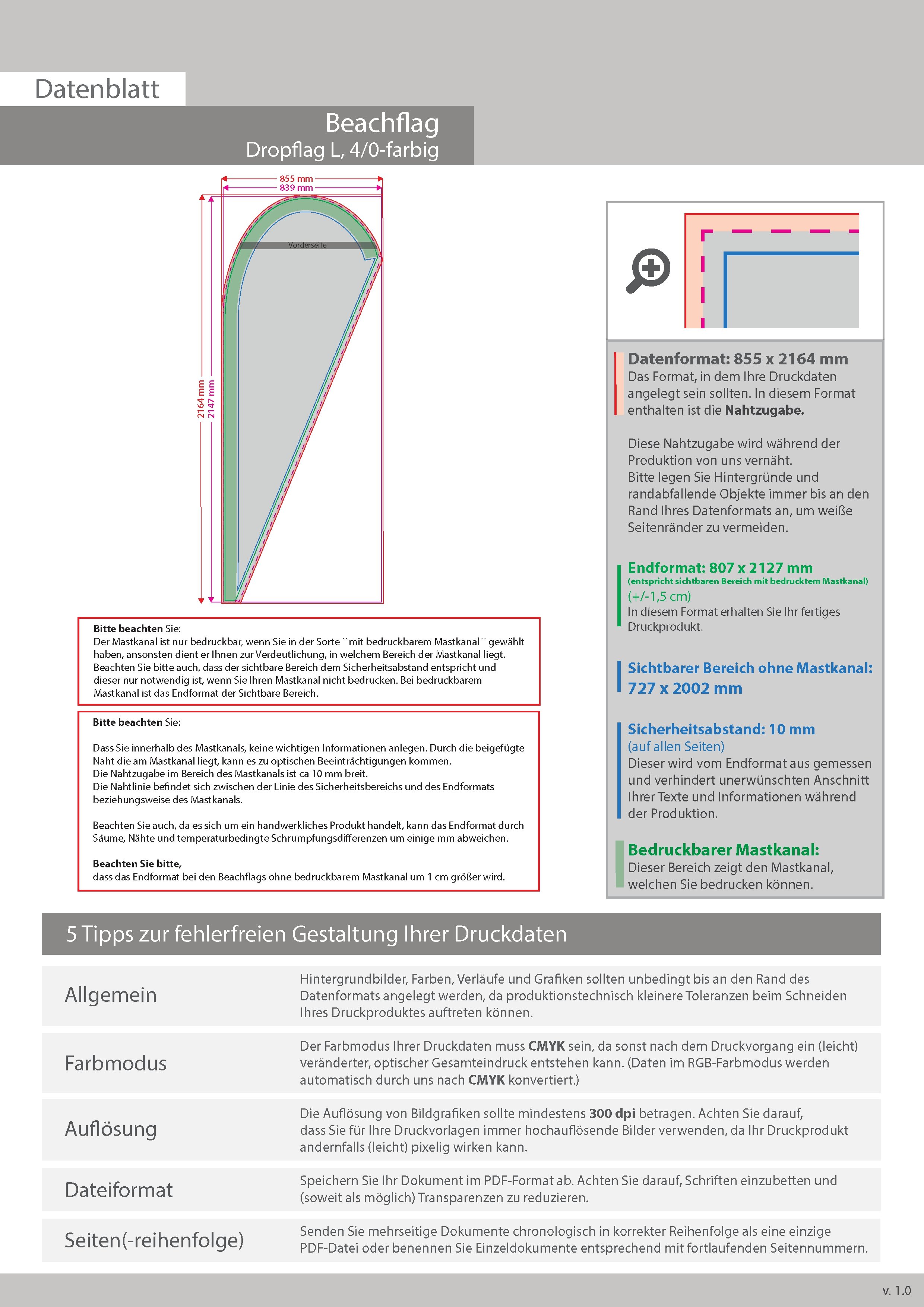 Beachflag Premium-Drop Large, 4/0-farbig bedruckt inkl. Gestänge und Erdspieß (80 cm Länge)